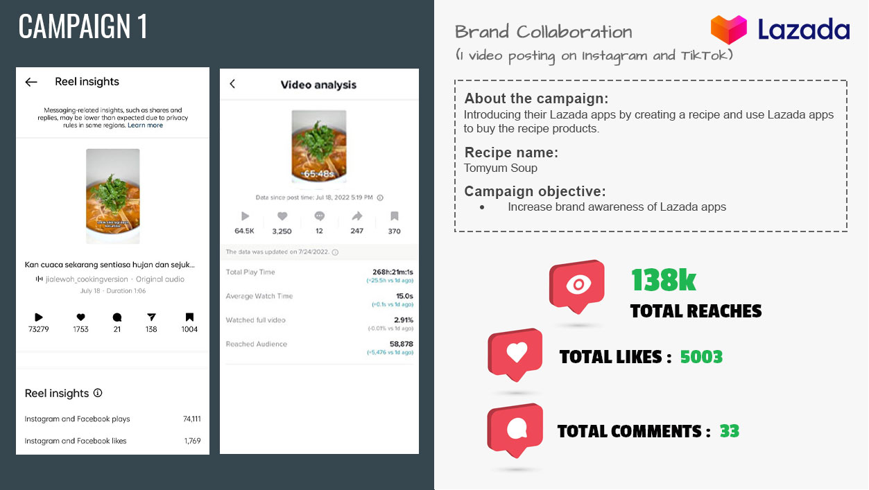 admin2023-05-03T11:24:20+08:00 Milestones Description Campaign Description Chef Jia Le Woh cook a simple recipe “Nasi Lemak” while promoting Lazada birthday sales Total Reaches: 18,000++